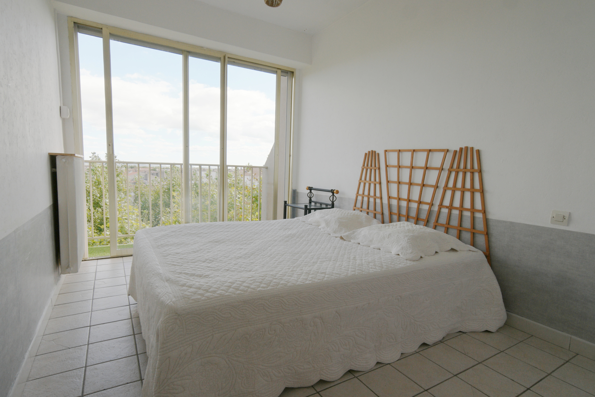 Une chambre avec placard, communicant directements avec le balcon.