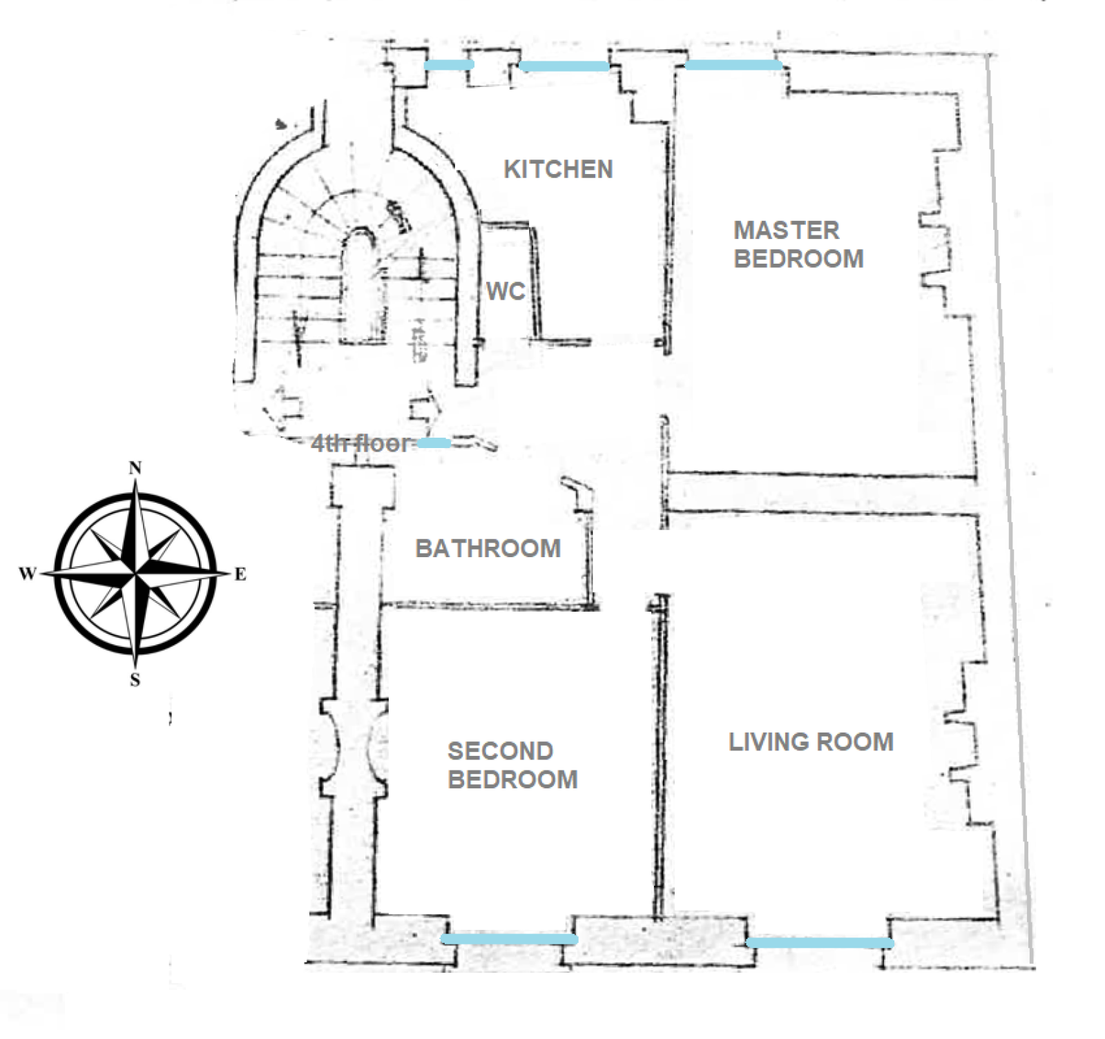Au 4e étage sans ascenseur (mais la discussion d'installer un ascenseur a été introduite lors de la dernière AG) d’un immeuble ancien, ce bien de 52,16 m² pondérés a été rénové avec soin pour allier charme de l’ancien et confort moderne. Il se distingue par ses cheminées et son agencement fonctionnel.